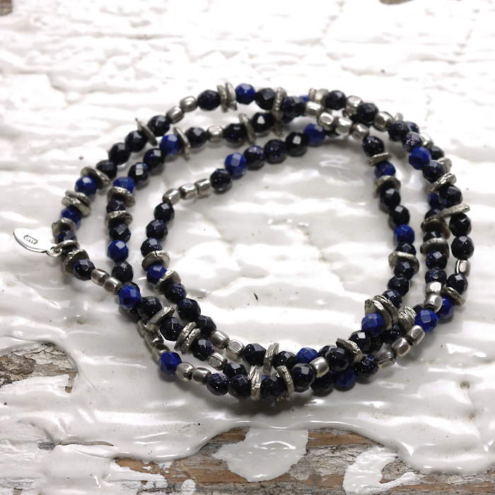 ラピス、ブルーゴールドストーン、ブラスビーズを組み合わせたブレスレット。