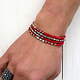 小粒で発色の良いレッドのヴィンテージホワイトハーツをベースにした4連ゴムブレスレットは、3連でアンクレット、そのままかぶってロングネックレスとして3WAYお使い頂けます。