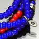 5mm幅で発色の良いネービーのホワイトハーツをベースにした4連ゴムブレスレットは、3連でアンクレット、そのままかぶってロングネックレスとして3WAYお使い頂けます。