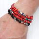 ブラックアゲート(めのう)をメインに、コーラル、ターコイズ、タイガーアイ、シルバーコーティングが施されたブラスビーズで構成されたブレスレット。