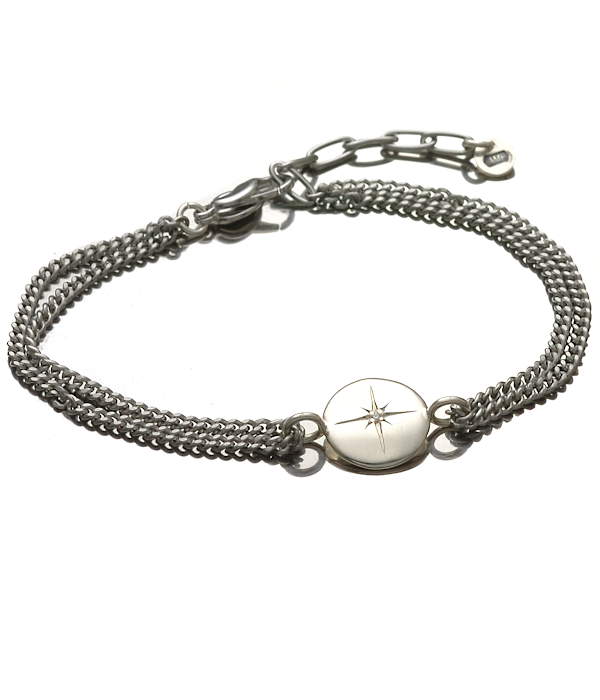 中央にダイヤモンドを彫り留めしたシルバー925製トップに、ステンレスチェーンをセットしたブレスレット