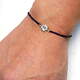 シルバー925製の円プレートに、ブラスでスマイルマークをロウ付けして描いたチャームに、手作業で丸四つ編みしたインディゴ染めのロウ引き紐を組み合わせたブレスレット