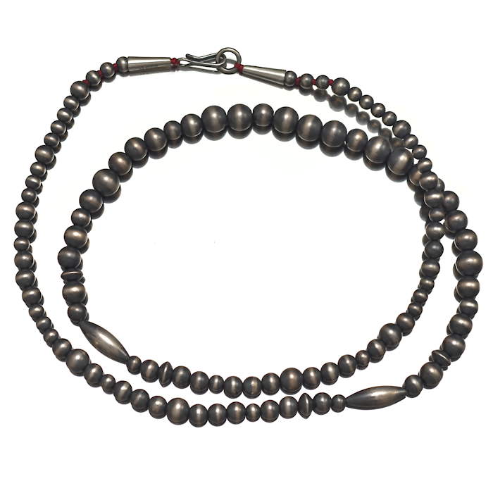 燻し、磨き上げたシルバー925製のナバホパールは、一粒一粒が味わい深く輝きます。