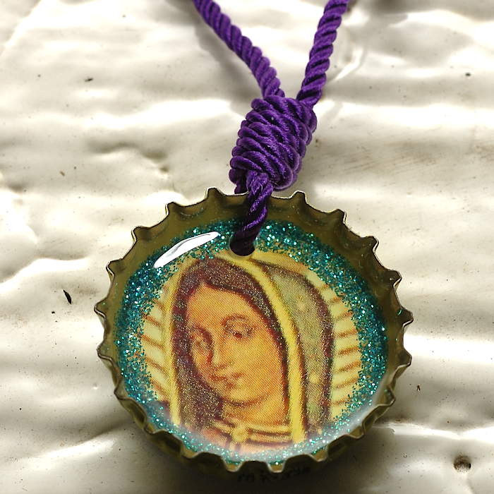 Bottle Cap Rosario with Blue Coated Maria Charm