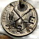 USダイムコインに、ニューメキシコ タオスプエブロのインディアンから譲り受けた、アロー(弓)、太陽、東を表すE、西を表すW、スカルの手打刻印を施したネックレス。