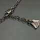 925シルバーとブラスの2枚のトップを下げた角型のペンダントに叩きを施し、ホールマークを打刻している。