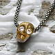 どことなく愛嬌があるスカルの目にはクリアーキュービックジルコニアが施されている。 ソリッドブラスのアンティークゴールド感とチェーンの相性も抜群。 チェーンの長さは、42cm~50cmの範囲で変えられる。
