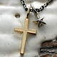 ハンドカットされ叩かれ仕上げられた手作りの10Kイエローゴールド製 17mmクロスと、シルバー925製の立体9mmスターのダブルトップ ネックレス