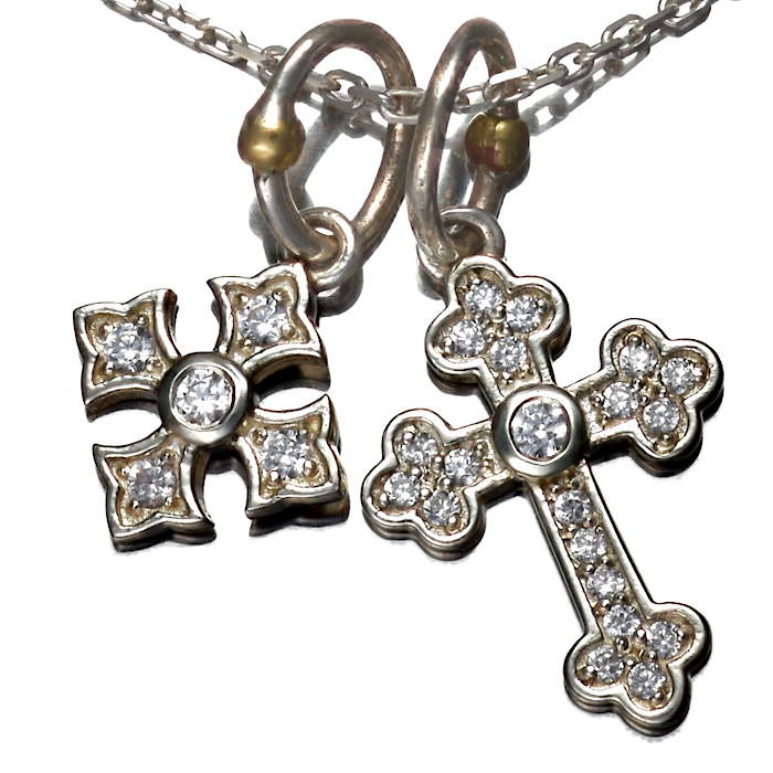キュービックジルコニアを施したフローラルクロスとバッズクロス