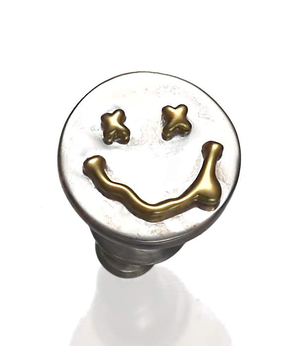 シルバー925製の円プレートにブラスでニルバーナ スマイルマークをロウ付けして描いた立体的なピアス