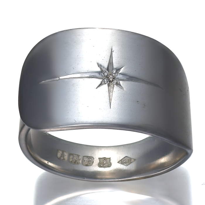 カトラリーのハンドル部分にダイアモンドを掘り留めしたリング。