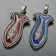ペンダントは、すずの合金にカラフルなエポキシ樹脂をはめ込んだ、