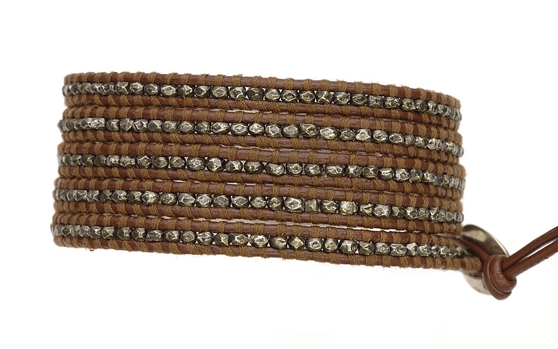 5ラップ レザー ブレスレット ガンメタルナゲッツ