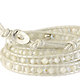 マザーオブパールとシルバー925のスカルビーズを編み上げた作品。