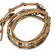 セミプレシャスストーンとインディアンビーズをレザーにあしらった2連ラップブレスレット。