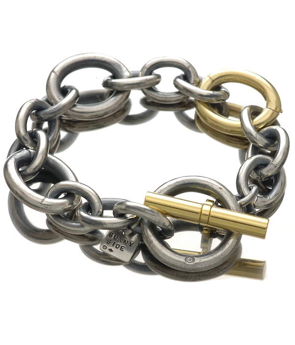 シリーズの中ではボリュームがある、大小のオーバルチェーンを連ねたブレスレット。