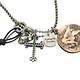 ダメージ加工を施したサージカルステンレス(316L)製のクロス、コインプレート、スカル、コットンコードを組み合わせたクールなアイテム。