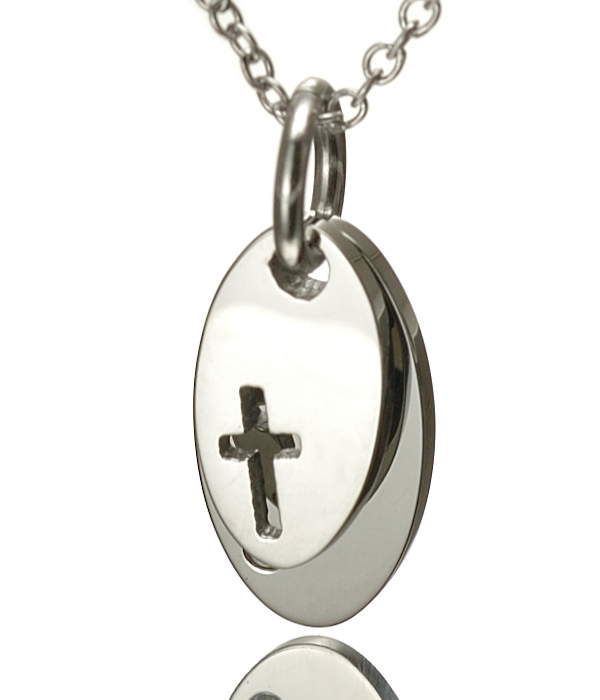 上下シルバーカラーのプレート型のペアネックレス