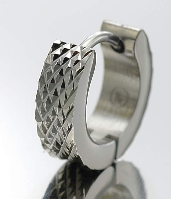 表面にダイヤモンドカットを施した存在感あるフープピアス