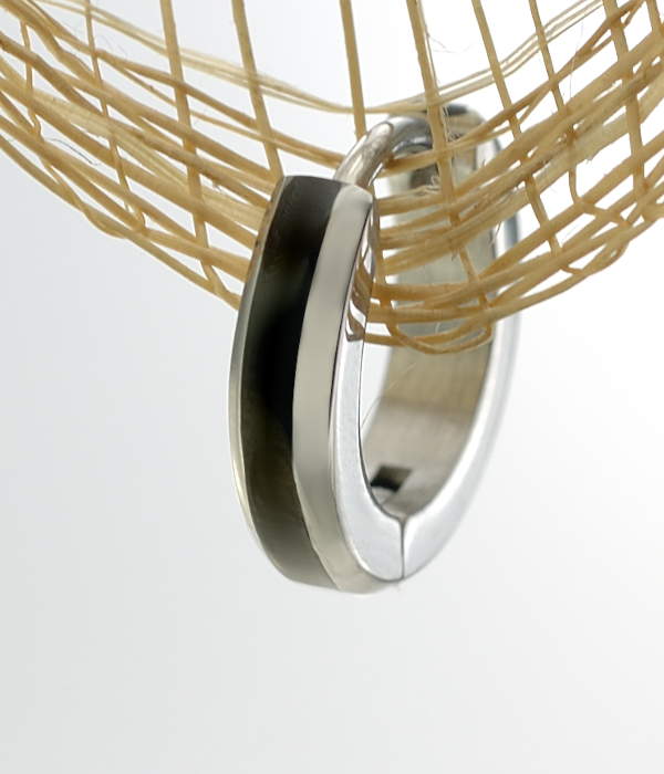 センターラインをブラックカラーにコーティングしたスタイリッシュなフープピアス